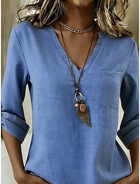 Per donna Camicia Finto cotone e lino Manica Lunga Scollo a V Rosa Grigio Primavera Autunno