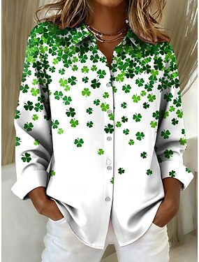 Festa di San Patrizio Per donna Blusa Bottoni Stampato Grafico Trifoglio Vintage Elegante Casual Manica Lunga Colletto a Camicia Top Regolari Quotidiano Lavoro Nero Bianco Verde chiaro Verde Estate