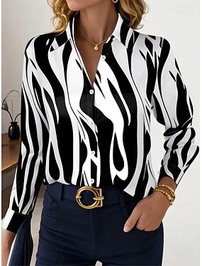 Per donna Camicia Camicia a nido d'ape Camicia casual Bottoni Grafico Geometrico Vintage Elegante Manica Lunga Top Regolari Quotidiano All'aperto Abbigliamento casual alla moda Bianco e nero Bianco