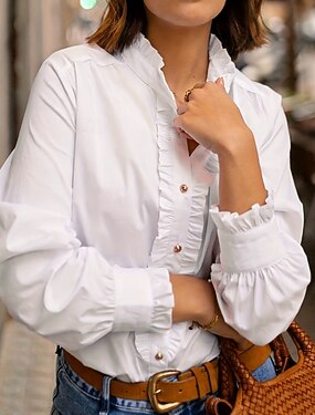 Per donna Camicia casual Camicia con Bottoni Blusa Volant Tinta unica Semplice Quotidiano Elegante Casual Manica Lunga Collo alla coreana Top Regolari Ferie Uscire Abbigliamento da vacanza Bianco