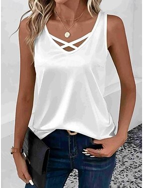 Per donna Raso/Satin Nodo frontale Elegante Vintage Senza Maniche Scollo a V Top Regolari Casuale Quotidiano Nero Bianco Oro Estate Primavera