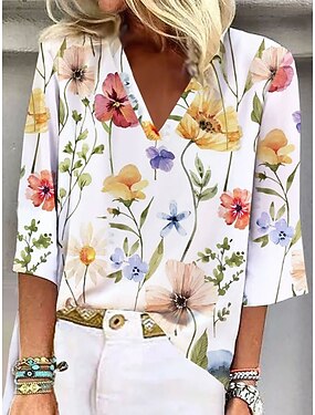 Per donna Blusa Stampato Floreale Grafico Elegante Casual Spiaggia Manica 3/4 Scollo a V Top Regolari Casuale Quotidiano Uscire Blu Bianco Giallo Verde Estate Primavera Autunno