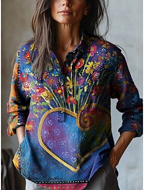 Per donna Blusa Stampato Floreale Vacanza Vintage Quotidiano Manica Lunga Colletto a Camicia Top Regolari Quotidiano All'aperto Ferie Viola Estate Primavera Autunno