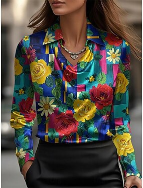 Per donna Camicia Camicia casual Blusa Stampato Floreale Grafico Bohemien Elegante Classico Manica Lunga Asimmetrico Top Regolari Quotidiano Ferie Uscire Rosa Vino Viola Arancione Estate Primavera
