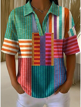 Per donna Top estivi Grafico Geometrico Elegante Vintage Manica Corta Scollo a V Top Regolari Casuale Quotidiano Rosso Verde Grigio Estate Primavera