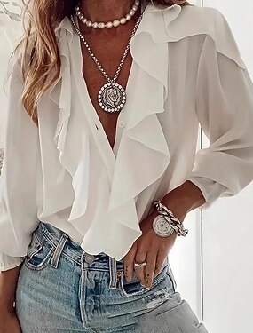 Per donna Camicia Blusa Volant Semplice Elegante Manica Lunga Scollo a V Top Regolari Quotidiano Ferie Uscire Nero Bianco Verde chiaro Verde Rosa Estate Primavera Autunno