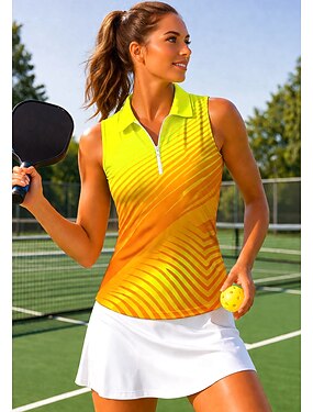 Per donna Sfumatura A righe Top Maglietta sportiva Polo da golf Maglia da tennis Senza Maniche Cerniera Floreale UPF50+ Resistente ai Raggi UV Alta elasticità Traspirante Pallavolo Tennis Golf Collo