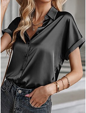 Per donna Camicia Camicia in raso Camicia casual Blusa Bottoni Semplice Elegante Classico Moderno Manica Lunga Colletto a Camicia Top Regolari Quotidiano Ferie Uscire Nero Rosa Vino Viola Marrone