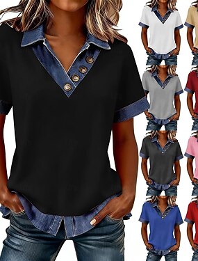 Per donna Maglietta Bottoni Semplice Moda Elegante Classico Manica Corta Colletto a Camicia Top Regolari Quotidiano Uscire Weekend Blu marino Viola Arancione Verde Estate Primavera
