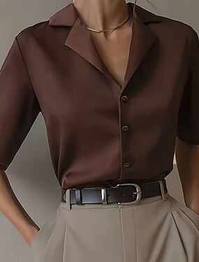 Per donna Camicia Top in raso Blusa Top Eleganti Semplice Elegante Manica Corta Scollo a Cascata Colletto a Camicia Top Regolari Quotidiano Ferie Uscire Nero Bianco Champagne Giallo Vino Estate