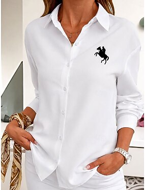 Per donna Camicia casual Camicia con Bottoni Blusa Patchwork Bottoni Stampato Grafico Animale Vintage Classico Casual Manica Lunga Collo ripiegato Top Regolari Quotidiano All'aperto Ferie Bianco