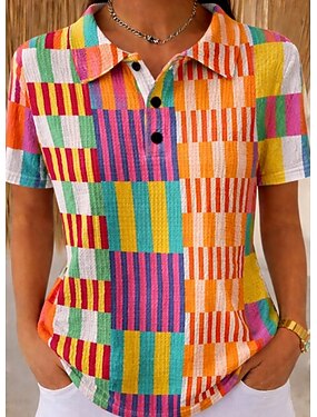 Per donna Camicia a nido d'ape Camicia casual Top estivi Patchwork Bottoni Stampato Grafico Geometrico Vintage Elegante Senza Maniche Manica Corta Top Regolari Casuale Quotidiano All'aperto Bianco e