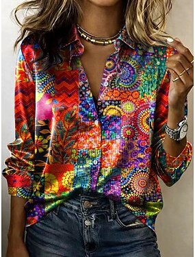 Per donna Camicia Grafico Geometrico Blocco di colori Vintage Elegante Moderno Manica Lunga Colletto a Camicia Top Regolari Quotidiano Ferie Rosa Rosso Estate Primavera
