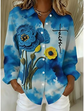 Per donna Camicia Camicia button-down Camicia casual Bottoni Stampato Floreale Grafico Elegante Moderno Casual Manica Lunga Colletto a Camicia Top Regolari Quotidiano Ferie Uscire Blu Primavera