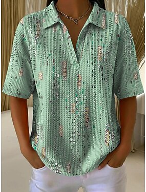 Per donna Top estivi Stampato Grafico Geometrico Astratto Elegante Vintage Classico Senza Maniche Manica Corta Colletto a Camicia Top lunghi Casuale Quotidiano Blu Rosa Viola Verde Estate Primavera