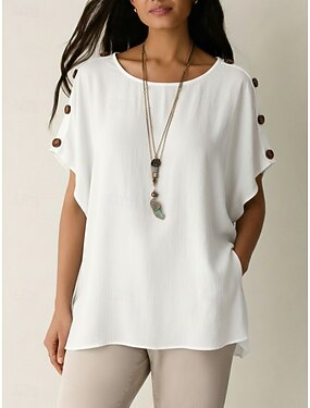 Per donna Top in chiffon Tinta unica Elegante Mezza Manica Asimmetrico Top lunghi Champagne Estate Primavera
