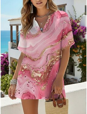 Per donna Camicia Camicia casual Camicia da Spiaggia Blusa Stampato Marmo Bohemien Classico Moderno Manica Corta Scollo a V Top Regolari Quotidiano Ferie Uscire Blu Rosa Estate Primavera