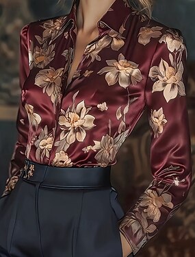 Per donna Camicia Elegant Top in raso Blusa Bottoni Stampato Floreale Vintage Elegante Manica Lunga Colletto a Camicia Top Regolari Ferie Uscire Vino Viola Verde Rosa Primavera Autunno