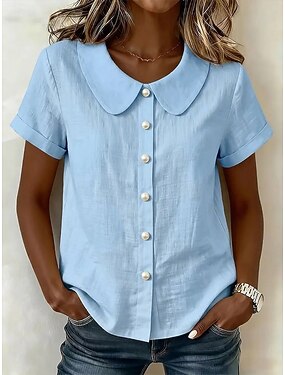 Per donna Blusa Bottoni Tinta unica Quotidiano Elegante Lussuoso Manica Corta Collare Peter Pan Top Regolari Casuale Quotidiano Blu Bianco Rosa Cachi Beige Estate Primavera