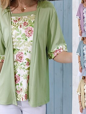 Per donna Blusa Patchwork Floreale Elegante Vacanza Casual Mezza Manica Collo quadrato Top Regolari Quotidiano Azzurro cielo Viola Verde Cachi Estate Primavera