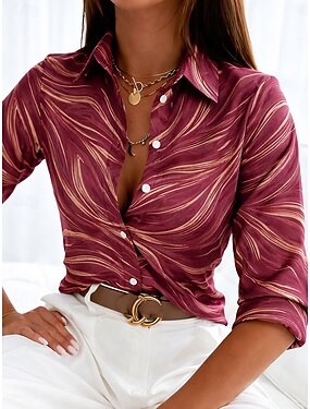 Per donna Camicia Blusa Bottoni Stampato Grafico Geometrico A righe Vintage Elegante Casual Manica Lunga Colletto a Camicia Top Regolari Quotidiano Nero Rosso Viola Verde Cachi Primavera Autunno