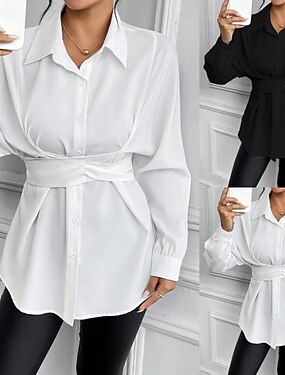 Per donna Blusa Bottoni Tinta unica Elegante Essenziale Casual Manica Lunga Colletto a Camicia Top Regolari Quotidiano Nero Bianco Primavera Autunno Inverno