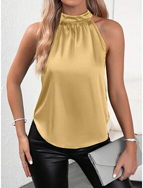Per donna Camicia Elegant Top in raso Top estivi Arricciato Patchwork Drappeggiato Tinta unica Semplice Elegante Vintage Signore Senza Maniche Collo Alto Top Regolari Quotidiano Lavoro Ferie Albicocca