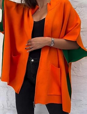 Per donna Giacca Casual Confortevole Tasca Casual Semplice Uscire Casual Quotidiano Cerniera Regolare Collo alla coreana Vestibilità regolare Mezza Manica Capispalla Arancione Verde Rosso rosa