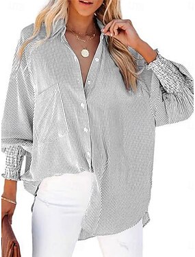 Per donna Blusa Bottoni Stampato A righe Elegante Casual Manica Lunga Colletto a Camicia Top lunghi Quotidiano Blu Giallo Rosa Verde Grigio Primavera Autunno Inverno