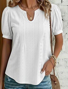 Per donna Camicia Camicia traforata Top traforato Blusa Traforato Semplice Elegante Classico Moderno Manica Corta Scollo a V Top Regolari Casuale Quotidiano Spiaggia Nero Bianco Rosa Vino Blu Reale