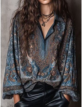 Per donna Camicia Camicia casual Paisley Vintage Elegante Classico Manica Lunga Scollo a V Top Regolari Quotidiano Ferie Uscire Blu Primavera Autunno
