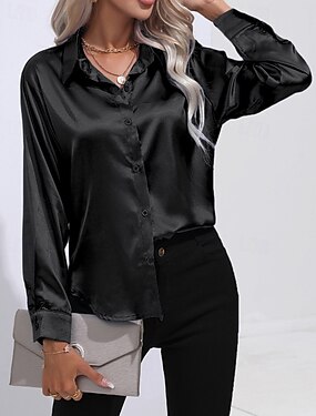 Per donna Camicia camicetta di raso Camicia elegante Camicia con Bottoni Tinta unica Semplice Elegante Moda Casual Manica Lunga Collo ripiegato Top Regolari Quotidiano Ufficio Lavoro Nero Rosa Rosso