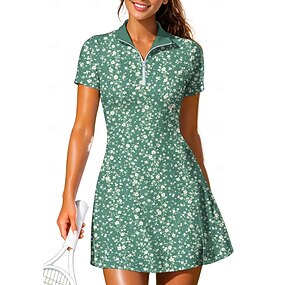 Per donna Floreale Abito sportivo Abito polo da tennis Senza Maniche Cerniera Zip a un quarto Elastico Traspirante Pallavolo Tennis Golf Colletto Collo ripiegato Vestito Nero Verde Chiaro Blu