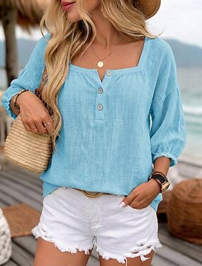 Per donna Blusa Tinta unica Semplice Quotidiano Elegante Essenziale Manica 3/4 Collo quadrato Top corti Quotidiano Blu Giallo Rosa Estate Primavera