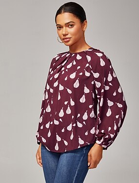 maglia da donna casual vestibilità ampia con stampa a pera manica lunga rosso vino