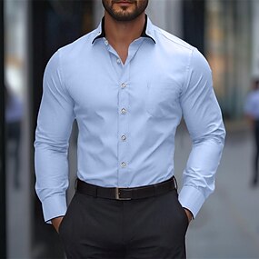 Per uomo Camicie Camicia abbottonata Resistente alle rughe Matrimonio Esterno Blu chiaro Nero Bianco Vino Manica lunga Estate Primavera Abbigliamento
