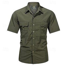 Per uomo camicia cargo Camicia da escursionismo Manica Corta Collo ripiegato Top Esterno Leggero Traspirante Estate Primavera Cotone Grigio scuro Nero Verde militare Tennis Golf Corsa