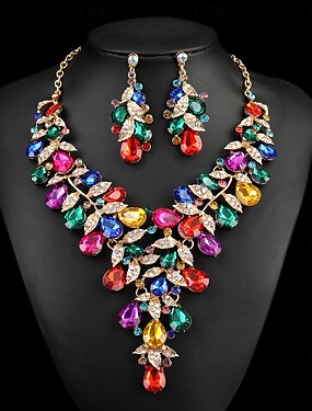 Set di Gioielli 2 Cromo 1 Collana Orecchini Per donna Elegante Vintage Moda Stile Vintage Classico Parure di gioielli Per Matrimonio Feste Ospite di nozze