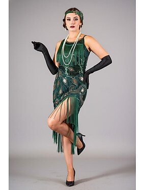 Set Anni Ruggenti Anni 1920 Abito Flapper Abito da cocktail con accessori Il grande Gatsby Ragazza Flapper Paillettes Frangia con nappe Frangia di nappa Con lustrini Costume Per donna Costume