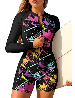 Per donna Top sottomuta Rash Guard completo per il corpo Costume da surf intero Tinta a nodi Astratto Con zip con reggiseno incorporato Cerniera Frontale Protezione Solare UV Coppa larga UPF50+