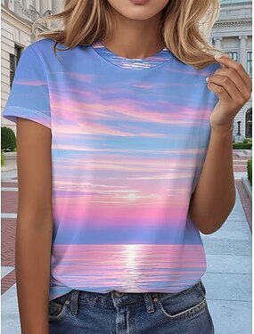 Per donna Maglietta Stampato Floreale Grafico Bohemien Vintage Casual Manica Corta Scollo a V Top Regolari Quotidiano Blu Rosso Viola Verde Estate Primavera