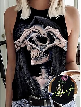 Camicia Blusa da donna Grafica Lettera Bohemia Hawaiana Etnica Senza maniche Collo a giro Regular Tops Stampa Quotidiana Nera Grigio Scuro Estate Primavera