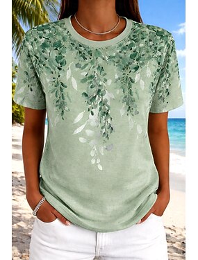Per donna Maglietta Stampato Floreale Grafico Piante Bohemien Hawaiano Elegante Manica Corta Girocollo Top Regolari Casuale Quotidiano Blu Bianco Rosa Verde Estate Primavera