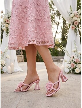 Sandali da donna rosa con tacco e stampa floreale – sandali estivi con tacco scultoreo e punta aperta, perfetti per cene in resort e serate in vacanza. &festa in spiaggia
