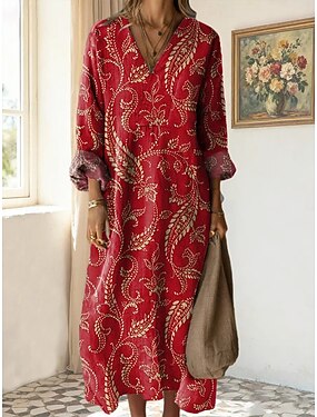 Per donna Abito Midi Abito a Tubino Vacanza Casual Uscire Vestibilità regolare Grafico Paisley Manica Lunga Scollo a V Nero Rosso Marrone chiaro Verde Autunno Inverno