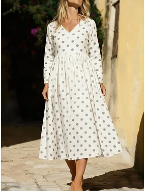 Per donna Abito Midi Abito a trapezio Abito aderente e svasato Vacanza Casual Boho Quotidiano Feste Uscire Vestibilità regolare Floreale Grafico Manica Lunga Girocollo Bianco Rosso Beige Estate