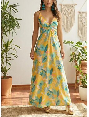 abito casual da donna abito scampanato abito sottoveste floreale foglia schiena scoperta stampa spalline abito lungo abito lungo hawaiano casual quotidiano vacanza senza maniche estate