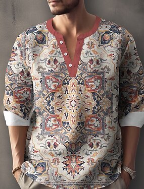 Per uomo Motivo floreale persiano Camicia Maglia Henley Tunica Manica Lunga Etnico Boho Quotidiano All'aperto Vacanza Estate Primavera Scollo a V Cardigan con Bottoni Stampa 3D Camicia tipo lino