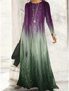 Per donna Abito Lungo Maxi Abito Abito Boho Vestito Casual Vestito a ruota Vintage Quotidiano All'aperto Weekend Vestibilità comoda Ombre Floreale Manica Lunga Girocollo Viola Primavera Autunno