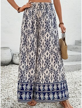 Per donna Gamba larga Chinos Streetwear Stile Boho Casual Lunghezza intera Vita media Floreale Tasca Fascia Elastica Stampa Comodo Comodità Inelastico Quotidiano All'aperto Vacanza Blu Estate